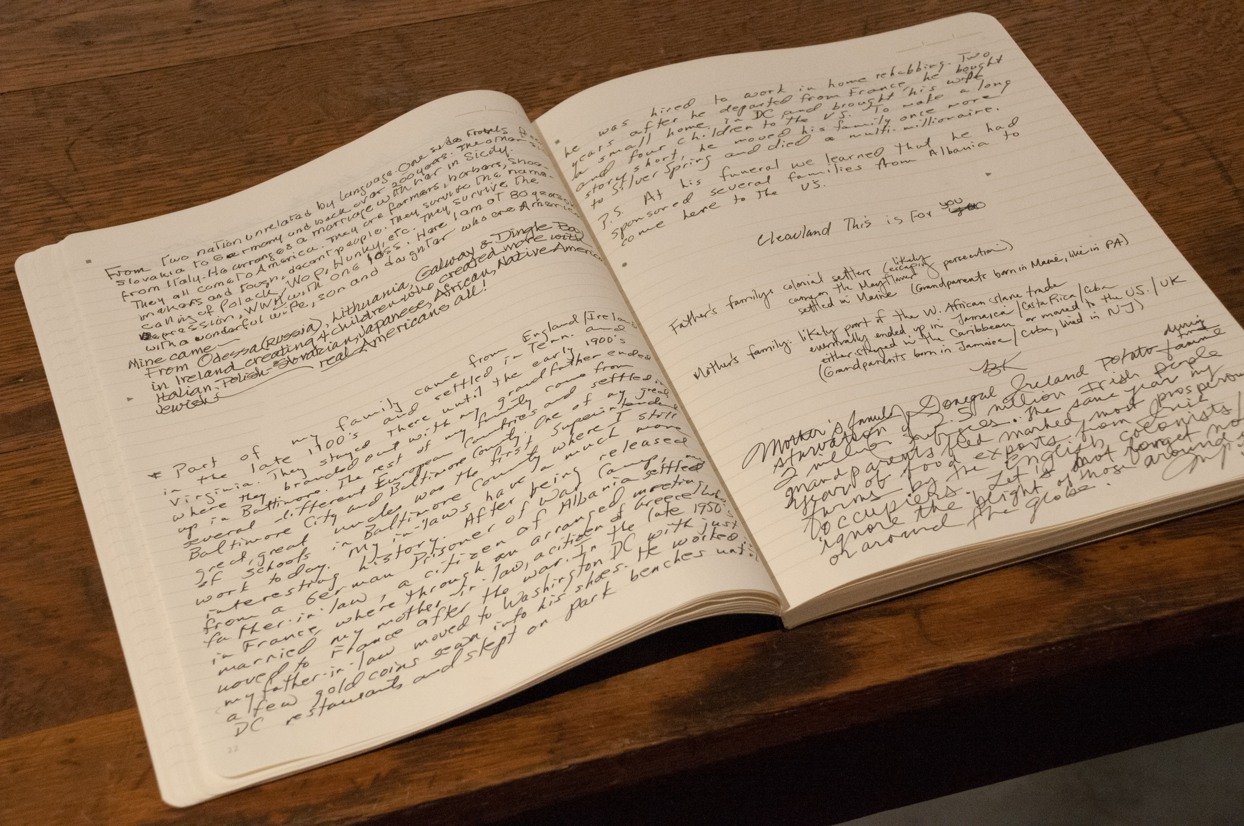 This notebook was then filled by viewers with amazing, powerful stories of perseverance, love, tragedy and many family’s desperate desires for change. Many of these stories formed the start of The Owing to Circumstances Project and are represented in the hanging drawings in that installation in 2017.